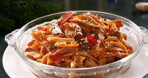 2.鍋上火入色拉油燒熱,下入雞胗和B料炒香,加入清湯燒至入味。