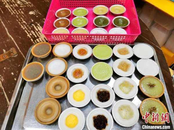 “臺山傳統缽仔糕,隻有黃糖、白糖兩款口味。我兒子在傳統做法的基礎上,結合本地的飲食習慣,搭配不同食材、配料,精心研制出不同口味的缽仔糕,他自己嘗過覺得滿意,才推出銷售。”雷焯恒母親說。