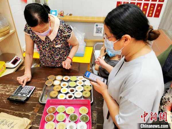 “阿姨,我每款口味都想要兩個,用盒子裝起來帶走。另外,鳳梨、桂花綠豆各一個,在這吃。”來自深圳的馬女士說,她特別愛吃缽仔糕,每次到廣州都去幫襯。