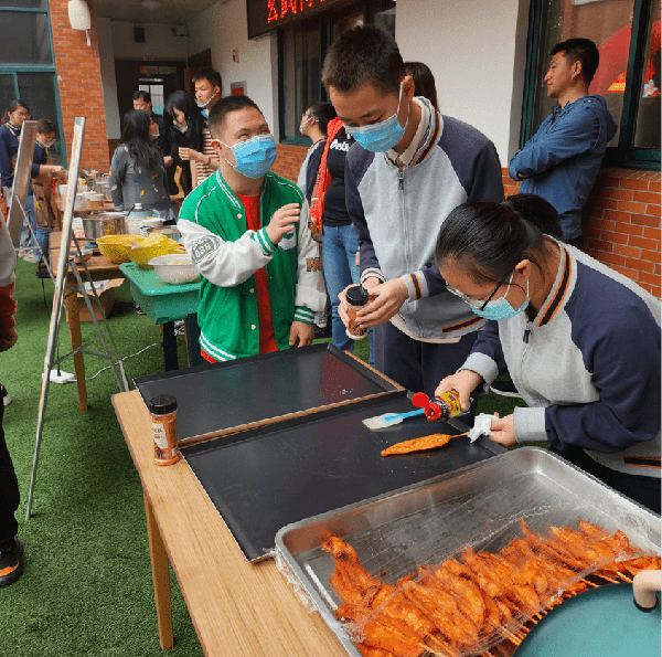 4月28日,清晨的校園充滿瞭忙碌的身影,老師們、同學們都在積極準備著各種各樣的食材,琳瑯滿目的食材被大傢整理好放在準備區,有醃制入味的雞翅、裡脊,有沖洗幹凈的花甲和各式肉類,還有精美的夏日飲品呢!