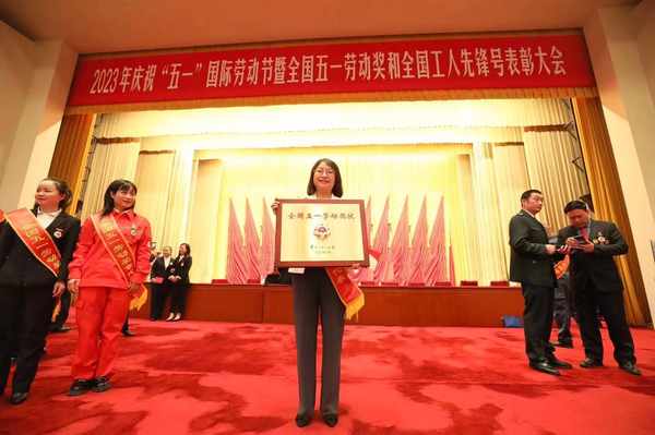 瀘州老窖股份有限公司副總經理、工會主席熊娉婷在北京人民大會堂參加2023年慶祝“五一”國際勞動節暨全國五一勞動獎和全國工人先鋒號表彰大會