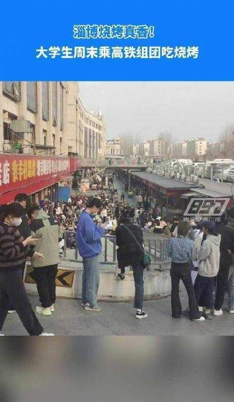 大學生周末組團乘坐高鐵前往淄博吃燒烤。