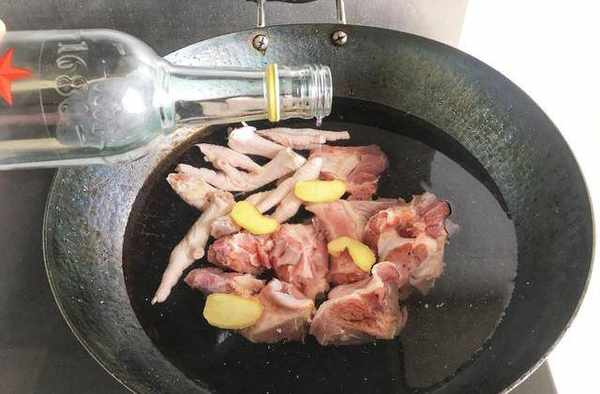 雞爪對半切開,豬大骨剔除瘦肉另做它用,砍斷,兩種食材提前用水浸泡兩小時,泡去血水,中途換幾次水,這樣做是為瞭去腥。然後冷水下鍋,放入白酒和薑片,大火燒開後再煮5分鐘撈出用涼水沖洗幹凈。