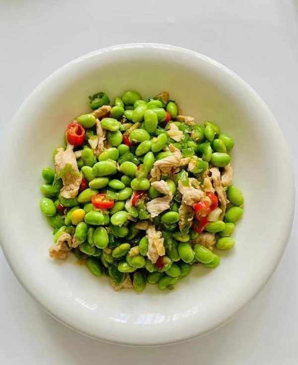 小燕雖說生活在廣東,但是對辣椒也有一定的喜好,小燕做的第一個菜是毛豆炒肉,這個菜放瞭一些青紅尖椒一起炒的,看著還挺有食欲的,加上綠油油的毛豆,食欲感很強,小燕平時晚餐是從不吃肉的,想著過節,做一個有點肉的菜,小燕切瞭一點點瘦肉和毛豆一起炒,其實毛豆占瞭很大一部分,瘦肉隻有一丁點。小燕炒的菜隻放瞭鹽,其他什麼調料也沒有放,吃起來比較清淡,網友們認為這個菜很寡淡,毫無食欲,他們一口也吃不下。