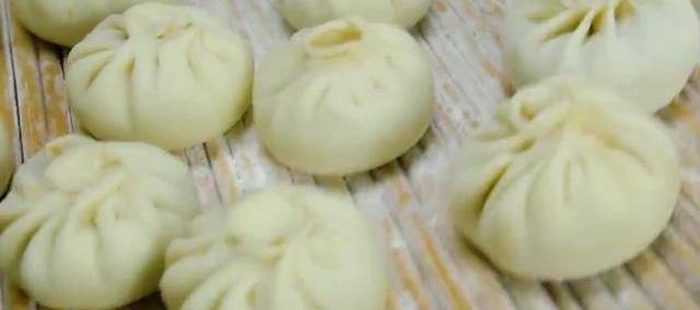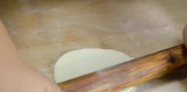 開始下手揉面瞭,把面團稍微揉光滑就可以瞭,把它取出來撒一些面粉,把每個小面劑子揉勻,按扁後用搟面杖搟開就可以瞭,把餡料放進去包起來,平底鍋熱油,把包子緊緊放在一起,蓋上蓋子,大概有4分鐘,底部已經焦黃瞭。