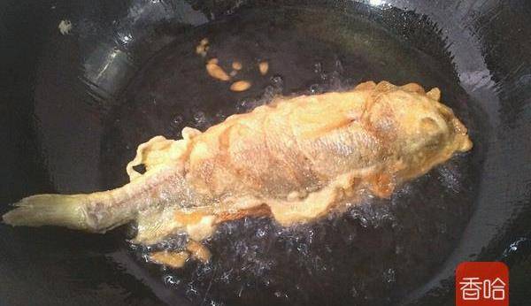 3.鍋內倒入適量的水把魚放入炸熟