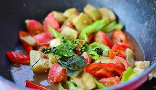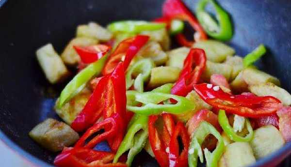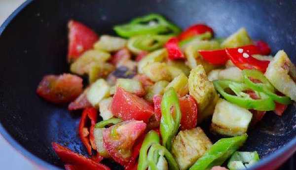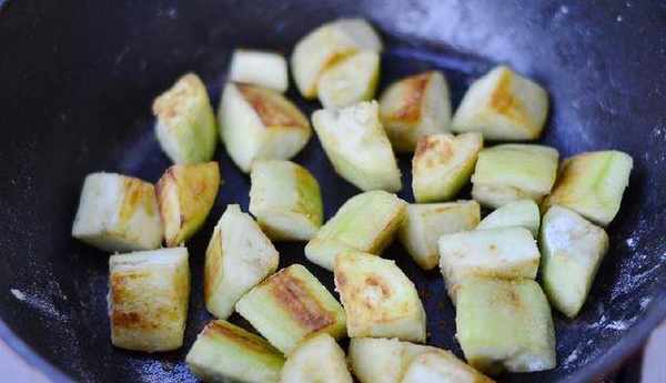 9:倒入茄子再次翻炒。