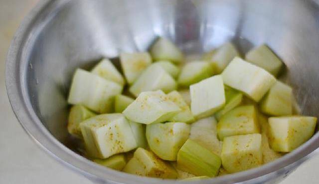 4:茄子倒入盆裡。