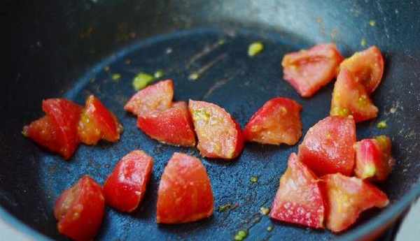 8:倒入西紅柿翻炒下。