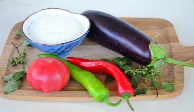 茄子1個,西紅柿1個,青紅椒各1個,新鮮的花椒葉適量,新鮮花椒10粒