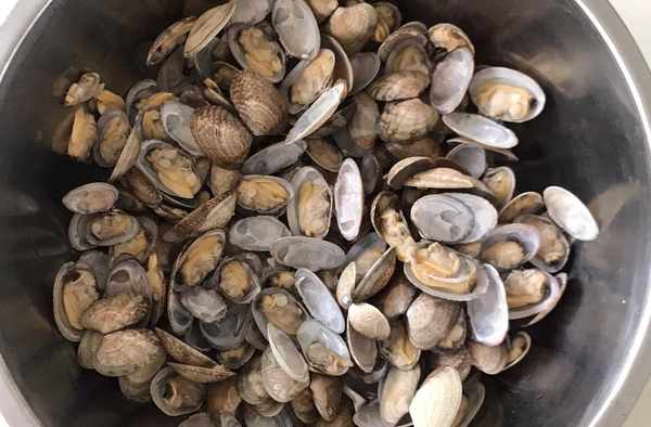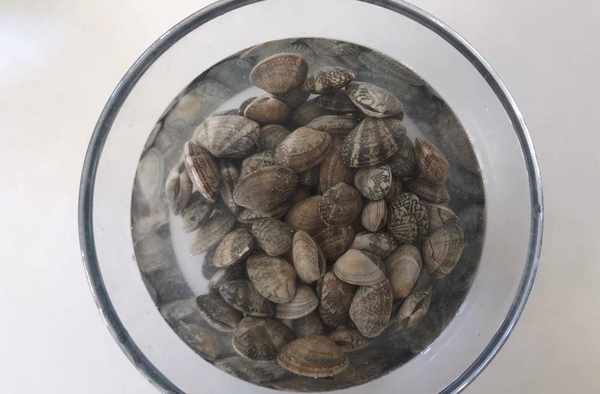 步驟一:蛤蜊要先處理幹凈才行,它的味道雖然好,但如果不處理幹凈會影響口感和味道。買回來的蛤蜊要先用清水浸泡半個小時以上,讓它徹底地吐沙,然後起鍋燒水,煮到蛤蜊完全的張口,把肉取出來。