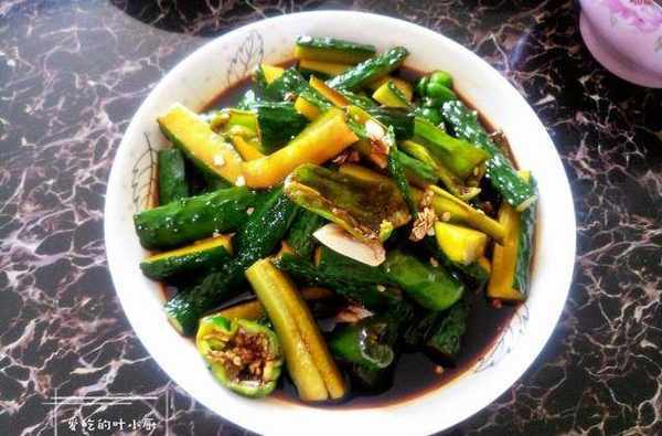 1.食材處理:黃瓜洗凈後切成細條,青辣椒洗凈對半切開,蒜瓣拍扁備用。