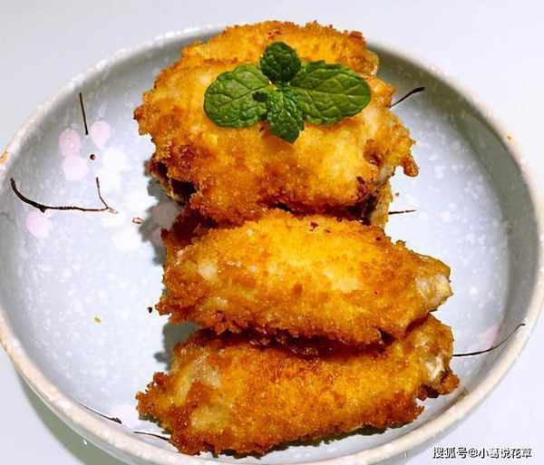材料:雞翅、鹽、黑胡椒粉、辣椒粉、料酒、雞蛋1個、面粉、面包糠、薑;