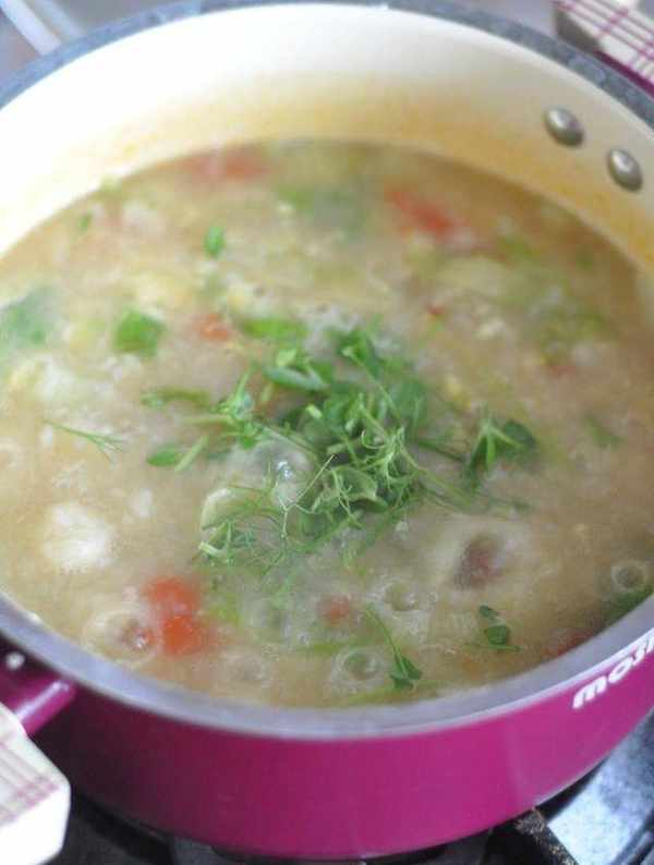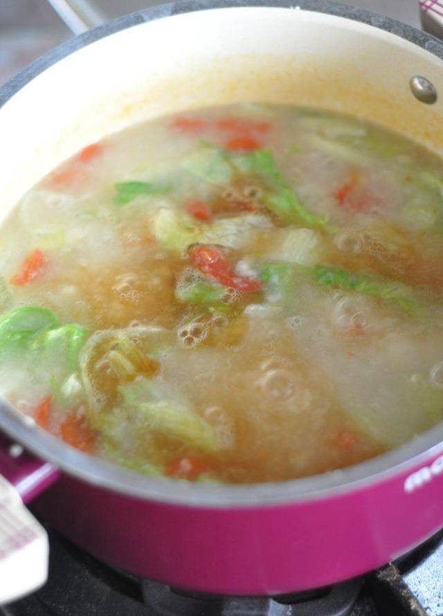5.煮幾分鐘後,將面疙瘩全部倒入。