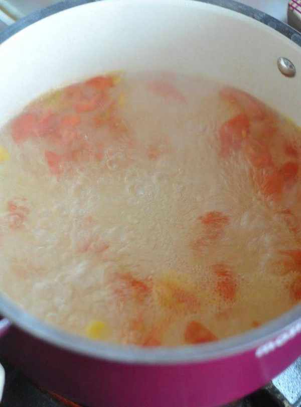 4.另取鍋燒開水後,放入切粒的聖女果。