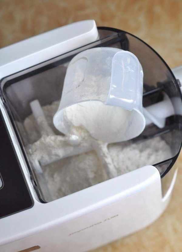 2.蓋上上蓋後使用和面程序,同時加入水。