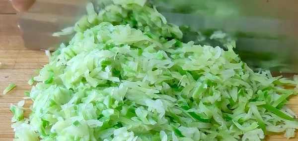 3、擠好以後放在案板上,用刀切得碎一點,這樣擠出來的丸子形狀會比較好看,切好之後放入一個大碗中,接下來準備一把洗幹的小香蔥,切成蔥花,蔥花可以多切一點,炸蘿卜丸子,多放點蔥花,這樣炸出的丸子會更加好吃,盡量把它切的碎一點,方便入味兒。