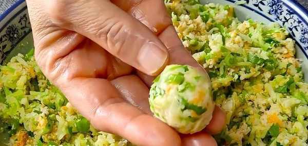 6、然後把它倒入蘿卜餡裡面,再往裡面放入兩勺面包糠,白面包糠或者是黃面包糠都可以,這樣炸出來的蘿卜丸子外皮會更加酥脆。然後再往裡面打入兩個雞蛋,接下來開始調味兒,往裡面加入一勺食鹽,少許的白胡椒粉。少許的五香粉。最後再加入兩克食用堿面兒,這樣炸出的丸子更加的蓬松好吃,不發粘,用筷子攪拌均勻,讓食材充分入味。攪拌至粘稠可以抱成團兒的程度就行瞭。然後手上抹點食用油防粘,我們用手抓適量的菜餡兒。用掌心攥緊實再團一會兒。最後團成一個丸子的形狀就可以啦,全部團好之後放到盤子裡備用。