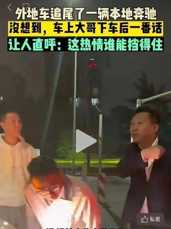 有網友反饋的外地人和淄博本地人車輛剮蹭,本以為會發生“全武行”沒想到結局很暖心。淄博本地大哥熱情的問來淄博遊玩的人晚上有沒有地方住,沒有的話可以住到自己傢。好客山東人名不虛傳。
