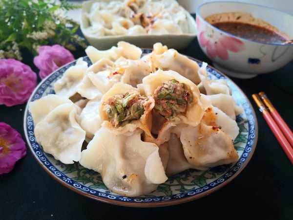 8、喜歡吃的朋友們,趁著這個季節抓緊時間吃,槐花與豬肉搭配起來,咬一口滿嘴香,肉汁和花香的融合使得肉餡餃子也能變得特別清爽。