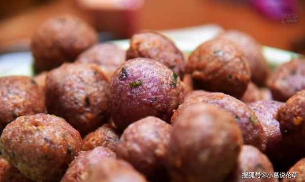 5、鍋中油燒至60%,用手捏碎丸子,放入鍋中炸1分鐘至外皮呈金黃色。