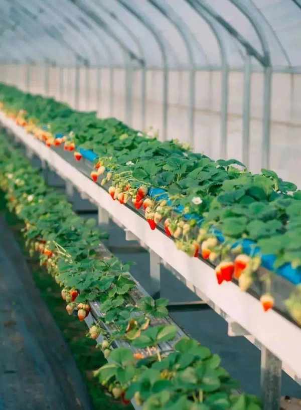 一顆顆紅彤彤的草莓懸掛著,像小燈籠,