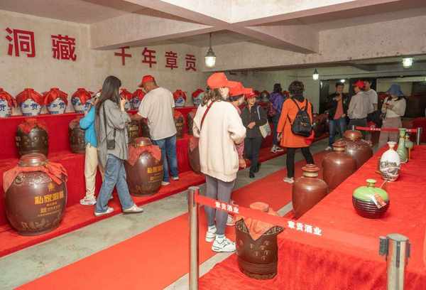活動第一天,在章貢酒業相關工作人員的熱情接待下,美酒鏈客戶一行80餘人分成兩組進行瞭章貢酒廠體驗遊。依次參觀瞭制曲車間、釀造車間、包裝車間、中國唯一紅巖洞藏酒窖、技術中心,並在章貢酒文化體驗館進行自調酒體驗,深入瞭解章貢酒的發展歷史以及釀酒工藝的“曲、水、糧、藝、融、境”六大特點,從各個角度完美地詮釋章貢酒產品的優勢。