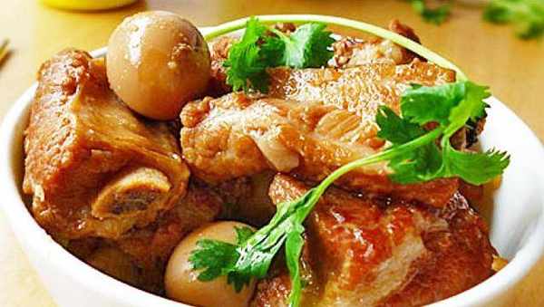 排骨適量,啤酒一根,鵪鶉蛋適量,薑片適量,蒜適量,生抽一湯匙,老抽一湯匙,鹽適量。。