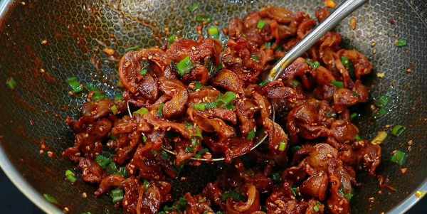 最後盛出裝盤,這樣一份非常好吃的孜然雞胗就制作完成,吃起來外焦裡嫩,比燒烤店做的都好吃,下酒下飯都很不錯。喜歡的朋友別忘瞭收藏起來,試一下哦