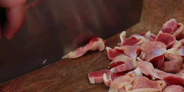 先把雞胗切成厚片,不要切太薄瞭,那樣雞胗水份容易流失,吃起來口感發柴