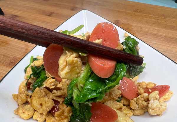 芹菜葉炒雞蛋是很常見的傢常菜,5分鐘就能上桌的快手菜,芹菜葉清爽,雞蛋嫩滑,加瞭火腿腸,看都有食欲,孩子超愛吃。芹菜時很常見的蔬菜,一年四季價格都不高,芹菜葉不要扔瞭,可以和雞蛋一起炒一炒,配稀飯,配米飯都可以。步驟詳細,看一下具體是怎麼做的吧。