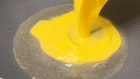 5. 起鍋加入植物油,油熱倒入雞蛋液
