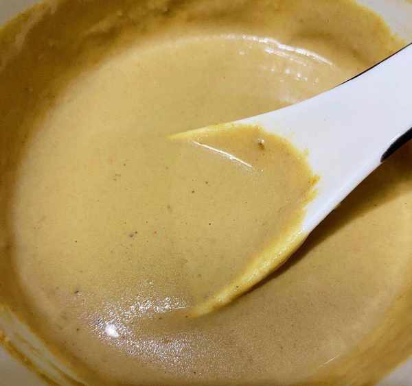 步驟八:調制一個料汁,1勺芝麻醬,1勺生抽,半勺醋,一點點蠔油,少許蒜末,芝麻醬如果濃稠的話需要先用少量水化開。
