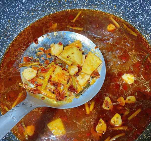 步驟五:用勺子撈出裡面的料渣,方便吃完之後喝湯。