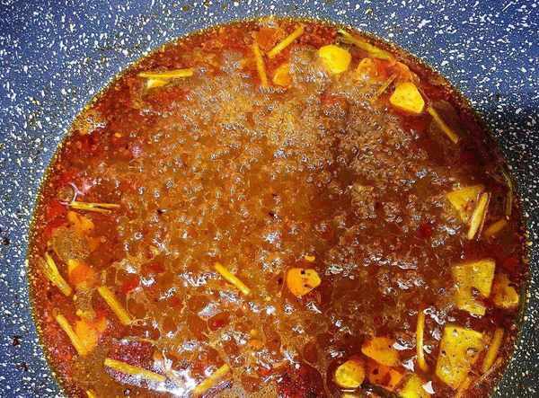 步驟三:然後下入郫縣豆瓣醬和火鍋底料,小火炒至底料化開,炒出紅油出來即可。