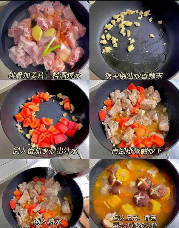 3:將排骨倒入鍋中進行翻炒,讓排骨和番茄汁的味道相互融合