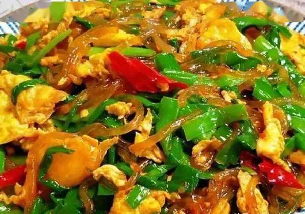 準備食材:韭菜,粉條,雞蛋,小米辣,蒜片。