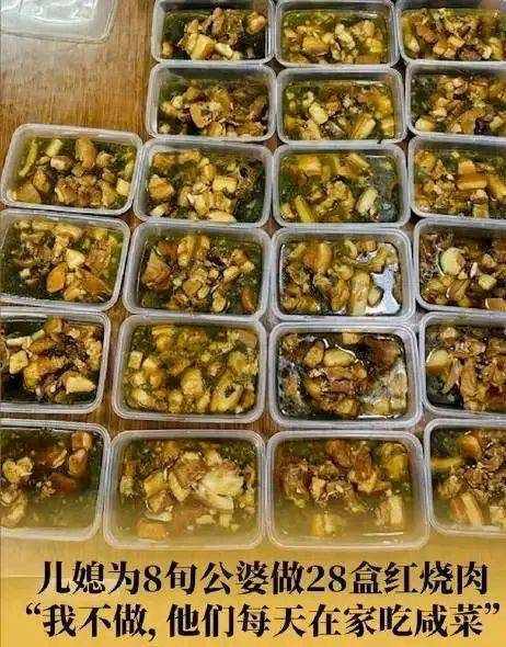 這一回,兒媳帶著10歲的孫子一起,給公婆做瞭28盒紅燒肉,還有600多個餃子,丈夫挺感動的,把這一幕發到瞭網絡上。