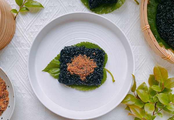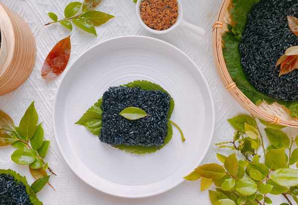 烏米飯和立夏飯有所不同,烏米飯是白色糯米經過染色蒸煮而得到的黑色米飯,染色用的是南燭葉,南燭葉為杜鵑花科植物烏飯樹的葉,有清肝明目、清熱解毒的作用,非常適合夏季食用,煮好的烏米飯色澤鮮艷、晶瑩剔透,再加上糯米獨有的滋潤柔軟,以及天然植株特有的自然清香,讓人回味無窮。
