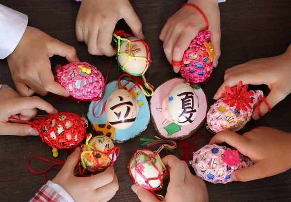 “立夏吃瞭蛋,力氣大一萬”,雞蛋作為一種簡單易得的營養品,用來為預防疰夏提前“進補”,是個不錯的選擇,所以立夏吃雞蛋,是大多數地區都有的一個習俗,關於“立夏蛋”還有很多說法,“立夏蛋,滿街甩”,這個說的是立夏鬥蛋,鬥蛋通常是小孩子們的遊戲,要用熟雞蛋,煮熟的雞蛋先裝在用彩色絲線或絨線編成的網兜裡,讓孩子掛在脖子上。