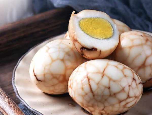 6、鹵好的茶葉蛋剝開之後表面有漂亮的大理石花紋,咸香入味。