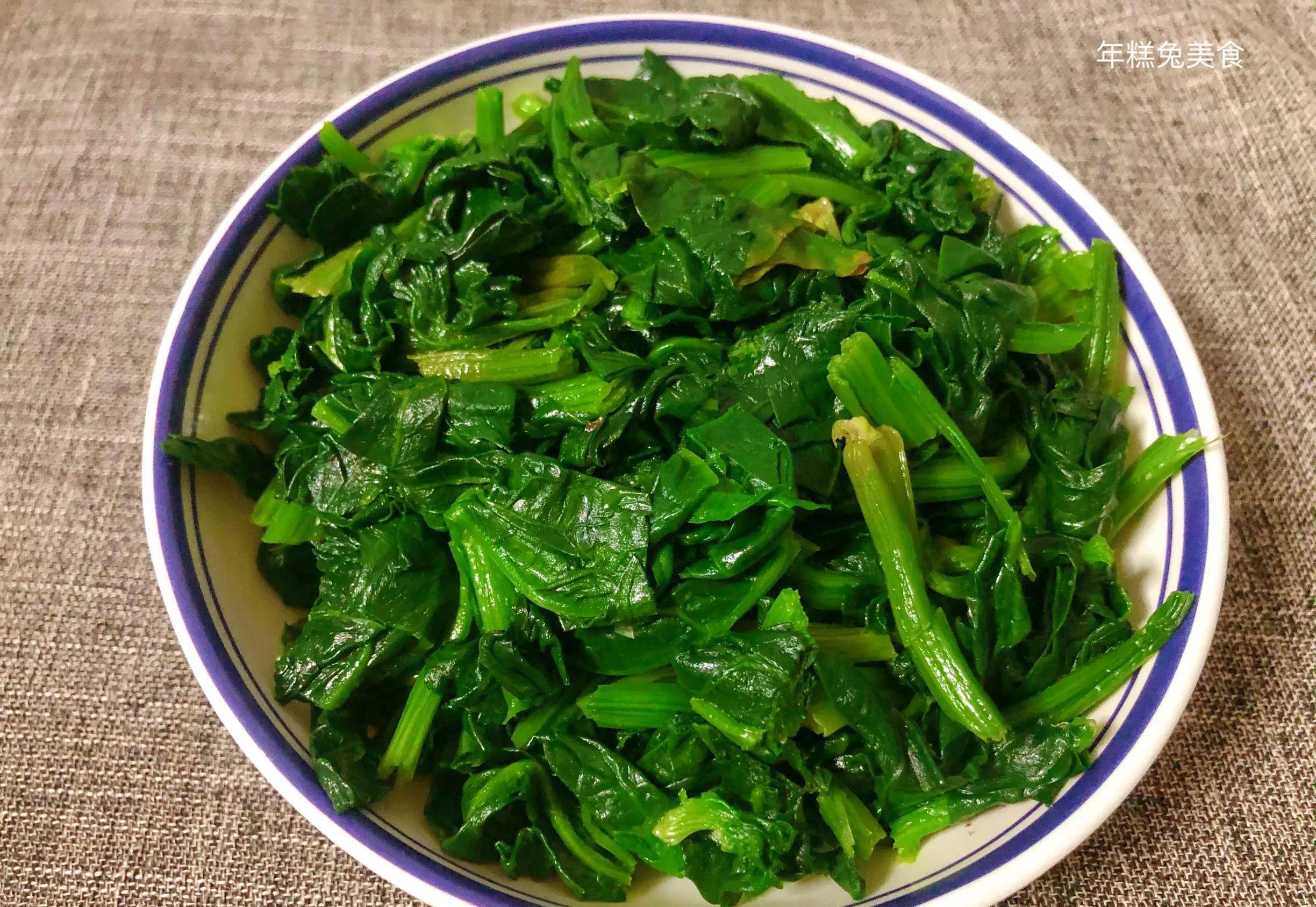 (2)然後攥幹菠菜的水分,切成小段裝盤備用