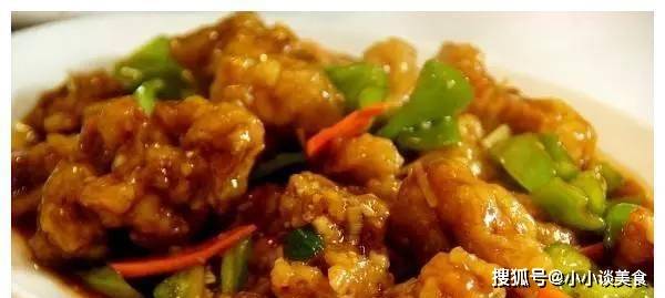 2、淀粉加少許水,淀粉和鍋裡肉的稠度會一致,把面團攤平,油熱到70%,把肉炒熟取出。金子。