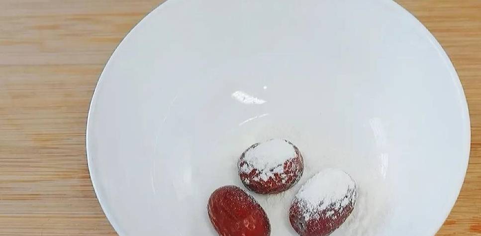 再加入適量的清水,把紅棗清洗一下,面粉有很強的吸附性,可以吸附紅棗表層的灰塵