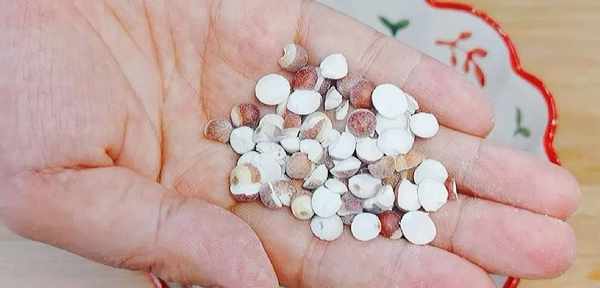 購買山藥的時候,我們可以用鼻子聞一聞有沒有刺鼻的味道,如果有刺鼻的氣味,說明是硫磺熏過的,這樣的山藥,我們千萬不能買,先把山藥掰成小塊兒,