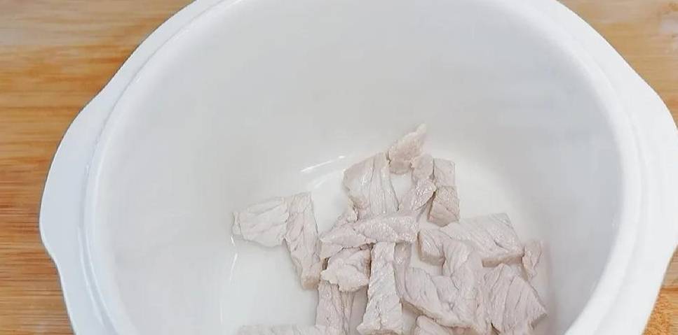 肉切好之後放入冷水中,然後再加入一勺料酒去腥