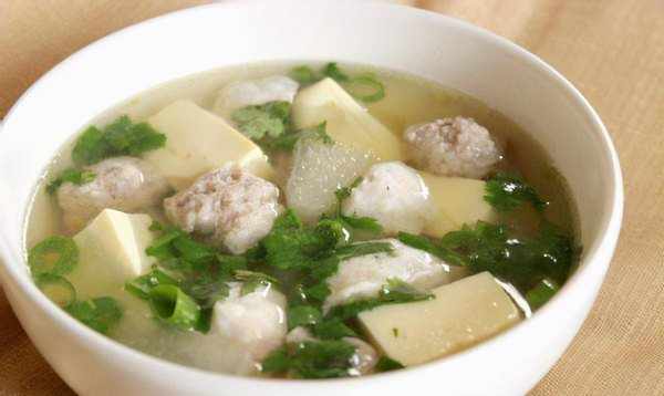 1、冬瓜去皮去籽備用;豆腐洗凈切小塊;