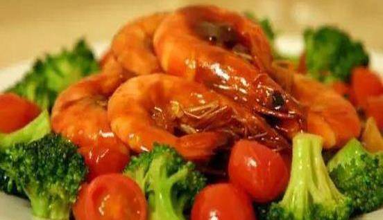 蝦2隻、西蘭花1條、香菇100克、番茄1個、番茄醬2湯匙(30毫升)、蔥花1茶匙(5克)、薑末1茶匙(5克)、蒜茸1茶匙(5克)、鹽1茶匙(5g)、白糖1湯匙(15g)、生抽1湯匙(15ml)、油2湯匙(30ml)