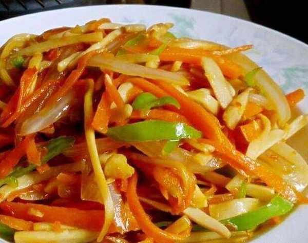 1.將洋蔥和薑切碎,將蔬菜切絲。在平底鍋中加熱油,炒洋蔥和薑,加入平菇和胡蘿卜絲,翻炒至變軟。