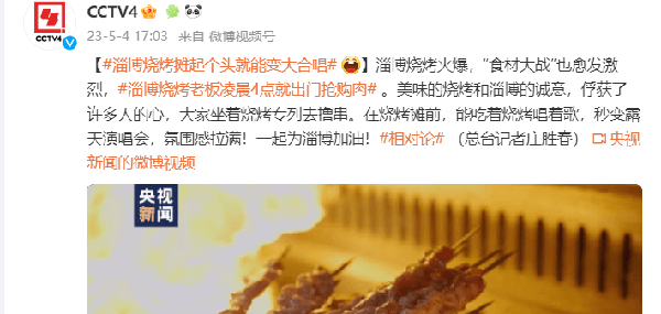 與此同時,CCTV4還發佈瞭一則時長達09:59秒的短視頻,該視頻系莊勝春主持的最新一期《相對論》節目。本期《相對論》節目的主題是央視記者探訪淄博燒烤熱的背後故事,下面就讓我們一起來看看都有哪些值得關註的亮點之處: